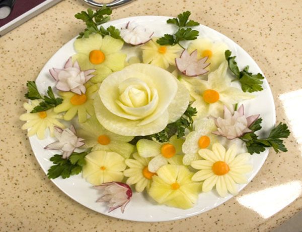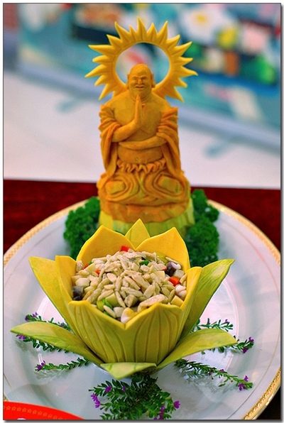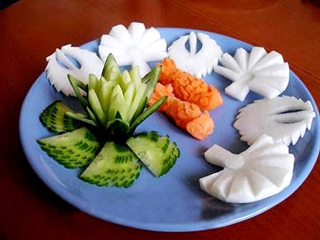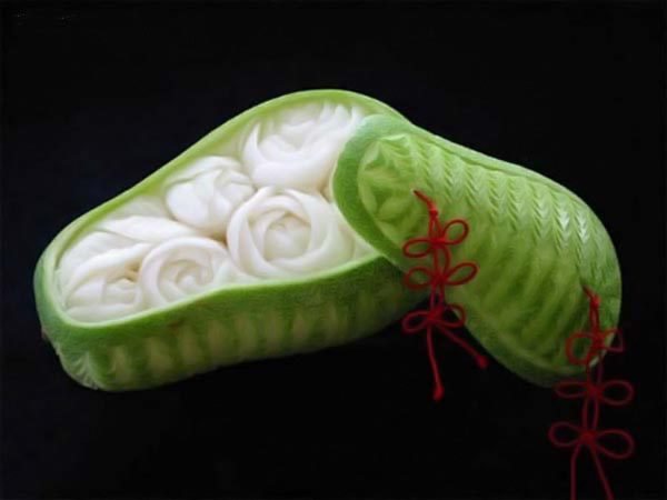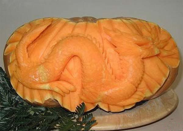 Искусство восточных чародеев еды идет в ногу со временем — восточный карвинг реализуется в роскошных фигурах птиц, драконов и других мифических фигурах.