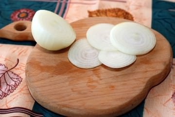 Лук очистить и нарезать кружочками или кольцами.