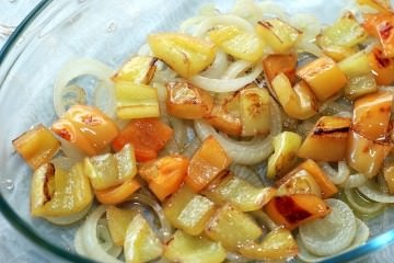 Далее в один слой выложить весь поджаренный перец.