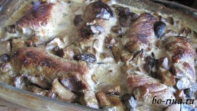 Обжаренные рулеты складываем в жаропрочную форму, заливаем соусом с грибами, плотно закрываем крышкой или фольгой и отправляем в духовку на 200 градусов на 40-60 минут. Затем снимаем крышку и держим в духовке ещё около пяти минут.