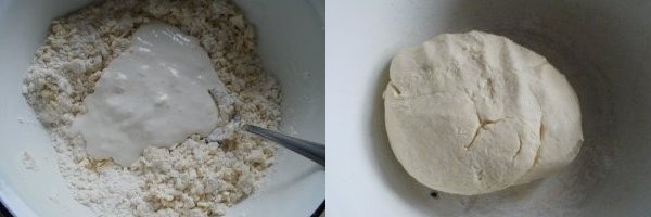 Добавить сметану. Замесить тесто. Сначала ложкой, затем руками, желательно в перчатках.