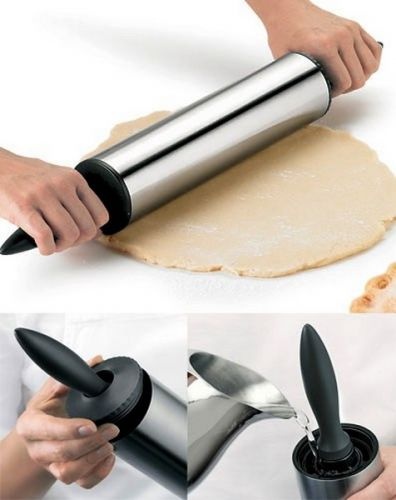 Часто в рецептах встречается совет: чтобы тесто не липло к рукам, надо подержать его в холодильнике. Со скалкой-охлаждателем в этом нет необходимости. Можно просто залить холодную воду в специальный резервуар и смело раскатывать тесто.