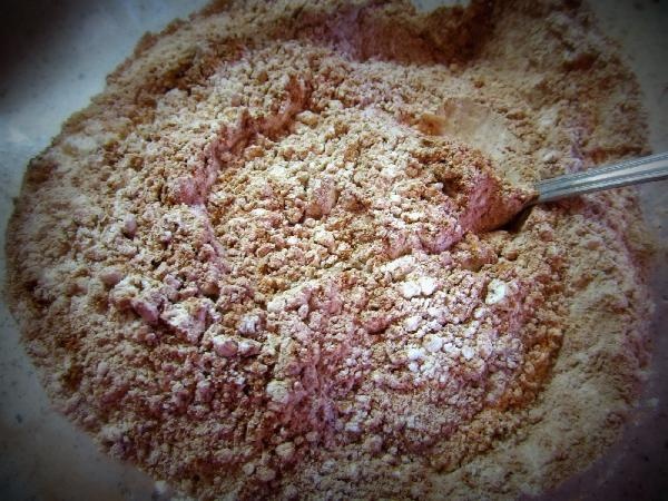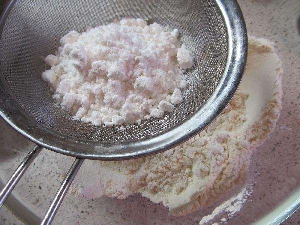 Просеять муку ( 1 стакан) и сахарную пудру в миску