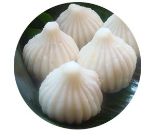 Модак — это традиционные пельмени индийского штата Махараштра. Тесто готовится из рисовой муки, а для начинки используется измельченная кокосовая мякоть и неочищенный пальмовый сахар, орехи и кардамон. Пельмени, похожие на купола, обжариваются в масле или готовят на пару, а едят вместе с горячим гхи (топленым маслом). Это блюдо традиционно готовят в день поклонения Ганеше. Именно с этим лакомством в руке изображается в скульптурах этот бог мудрости и благополучия (держит сладость в левой руке и тянется к ней хоботом).