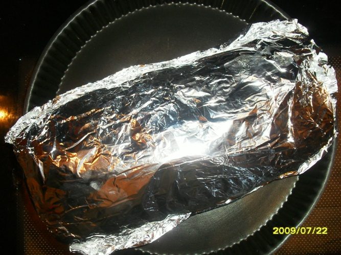 Завернуть всё в фольгу так, чтобы не было отверстий.