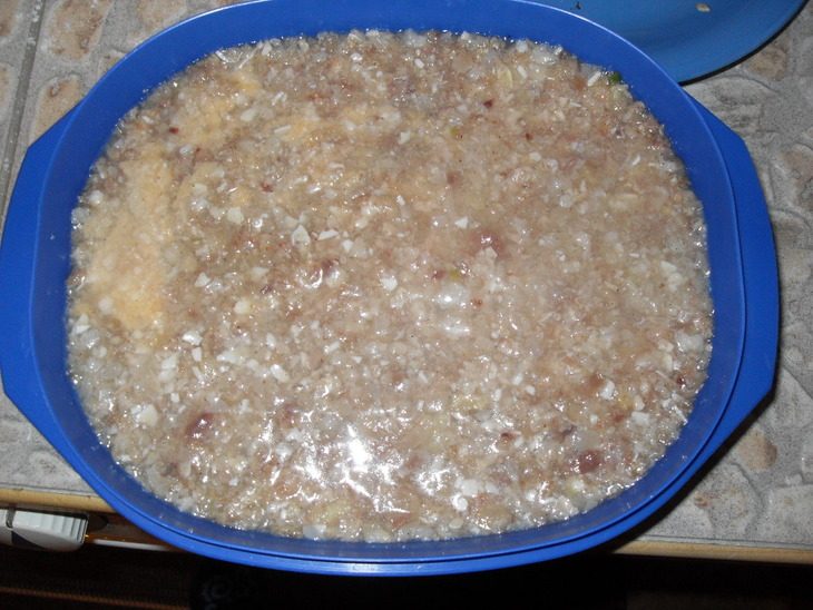 через пару часов в холодильнике, вытряхнем холодец на тарелку.