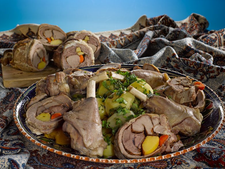 Что я вам хочу сказать: яхни или соютма (как вам будет удобнее называть это блюдо) в виде рулета — это очень хорошая и здравая идея. Рулет можно было бы сделать еще крупнее, увязав в один ком не только телятину и баранину, но еще и курятину и какую-то мелку птицу, можно было бы прослоить его фаршем, чем угодно еще. И дело не только в том, что чем богаче, тем и вкуснее. Просто различные виды мяса, различные части одной туши требует разной температуры приготовления. И размещение кусков мяса в разных слоях помогает решить этот вопрос. Уникальный вкус и великолепная консистенция мяса возникают не от соседства разных видов мяса, а от правильного режима его приготовления.
