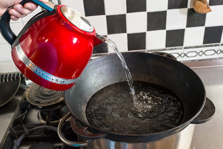 Пусть скорее нагревается вода, ведь мясо надо опускать именно в горячую воду!