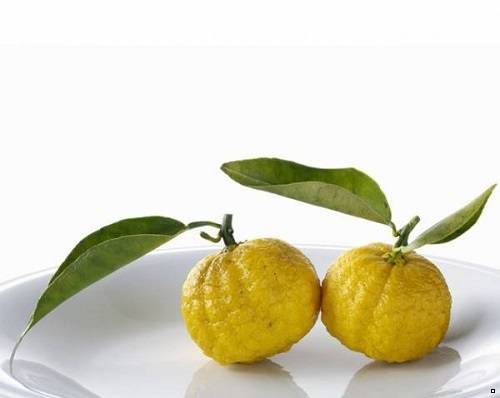 Юзу, или японский лимон, — гибрид мандарина и ичангской папеды (декоративный цитрус). Желтого или зеленого цвета фрукт с бугристой кожицей размером с мандарин имеет яркий аромат и кислый вкус. Он используется японцами еще с VII века, когда буддийские монахи завезли его на острова с материка. Фрукт популярен также в кулинарии Кореи и Китая.