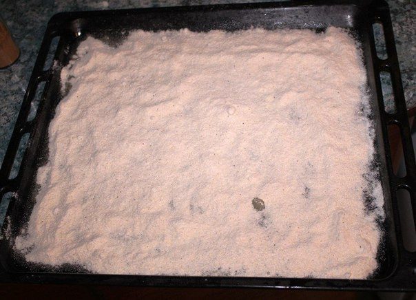 Выложить один слой сухой смеси на противень смазанный растительным маслом