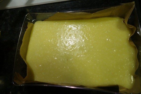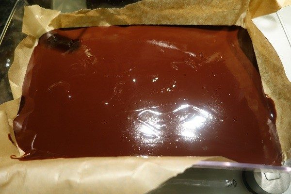 Выливаем на пергамент в квадратную коробку. Оставляем немного застыть.