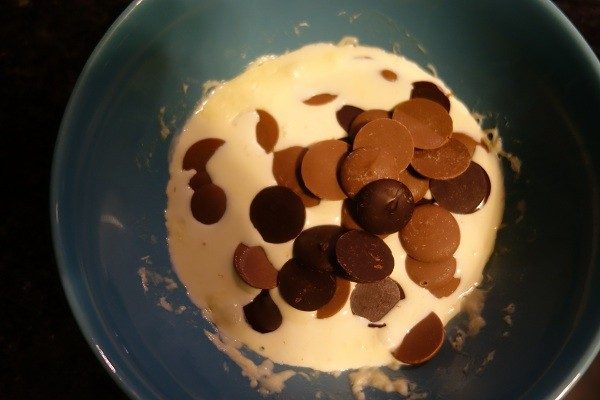 Предварительно разогреваем половину сливок в микроволновке 2 минуты при мощности 1000 Ватт.