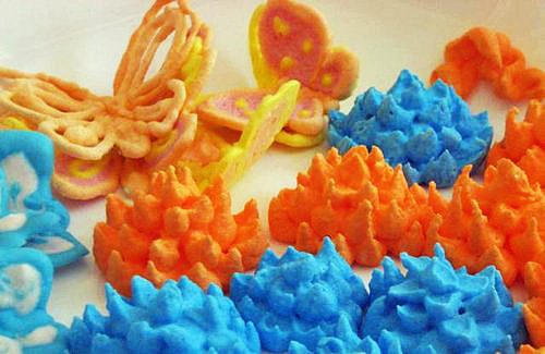 Маленькие поделки из цветного айсинга для украшения кондитерских изделий.