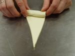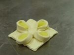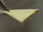Низ будущих розочек защипываем, а верх расправляем, развертывая тесто в стороны.