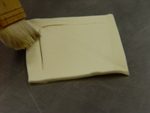 Тесто раскатаем до толщины 5 мм и разрежем на квадраты со стороной около 10 см.
