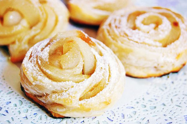 Духовку предварительно разогреваем до +220°С и выпекаем розочки 15-20 минут.