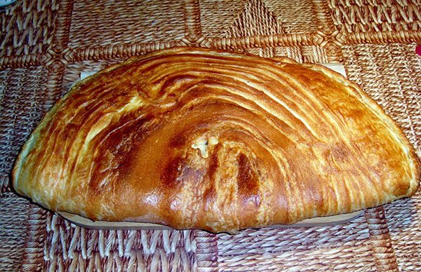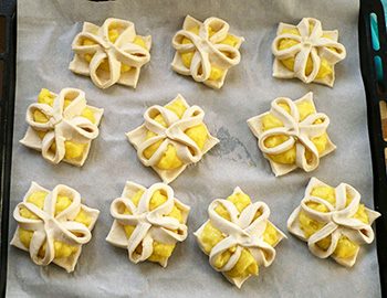 Тесто для калачих берут слоеное — или слоеное дрожжевое, или пресную слойку.