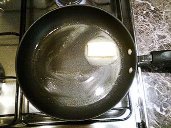 Добавляем в масло сахар и даем ему немного расплавиться до легкой карамелизации.