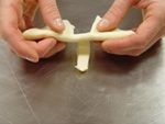 Полученную тестяную колбаску сгибаем в виде бублика открытыми «гнездышками» вверх и соединяем концы.