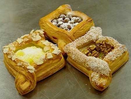 Фигурные пирожки из готового слоеного теста с черносливом или иной начинкой, жаренные во фритюре