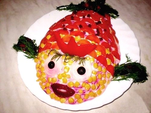 Оформление салата в виде «рыбки».