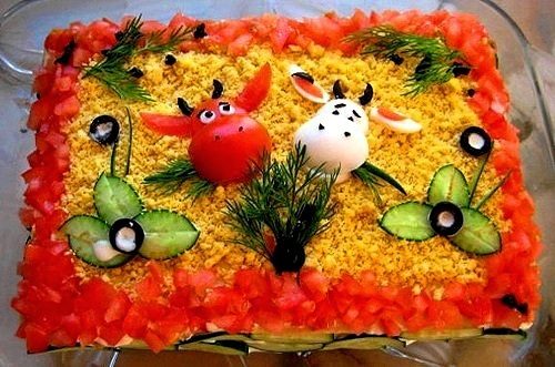 Украшение салата, паштета, закусочного или бутербродного торта «БЫЧОК и КОРОВКА».