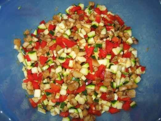 2. так же мелко нарезаем цуккини и красный перец.