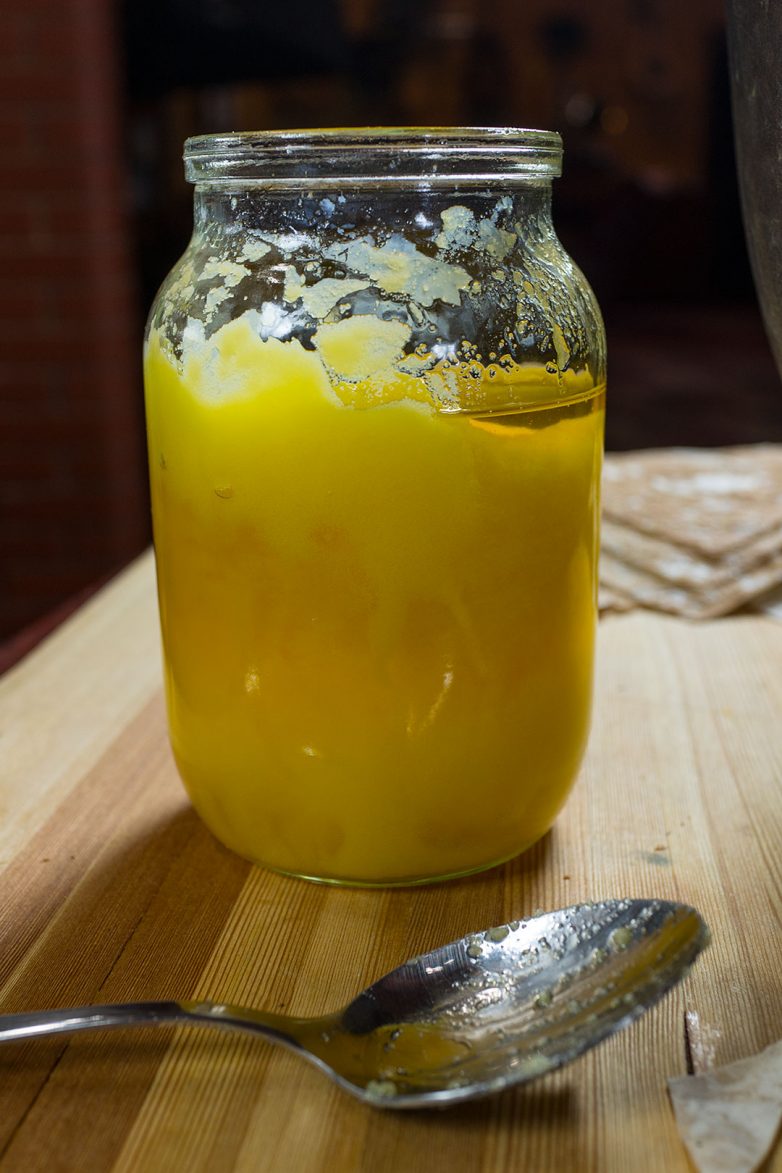 Но и масло понадобится еще. Сколько риса вы собираетесь взять на плов? Я брал два килограмма, поэтому масла у меня уйдет почти литр — 800 грамм. Да, только топленое. Не тот случай, когда одно можно заменить другим. Нет топленого — нет иранского праздника, отдыхайте.