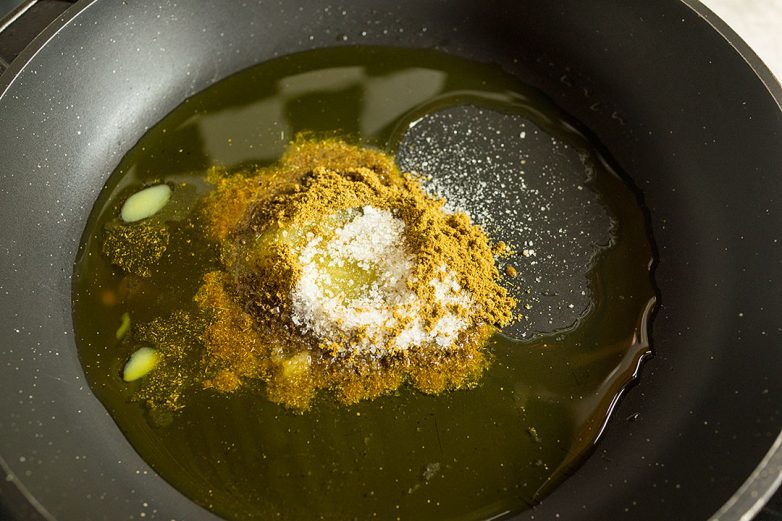 Курятину хорошо бы посолить и поперчить, добавить молотой зиры.