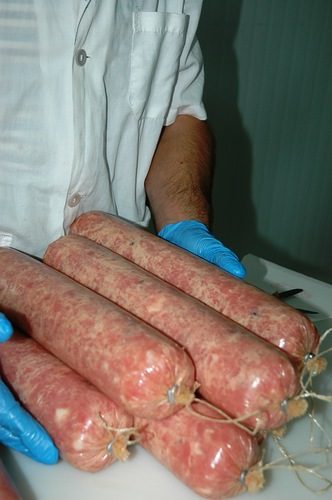 До момента операции по вымешиванию фарша упоминания о старинных крестьянских методах производства колбас не было. Вот тут-то и начался проявляться опыт множества поколений местных крестьян, колбасы которых знавали ещё древние римляне.
