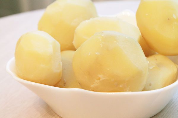 Отварите и очистите картофель. Остудите, чтобы не был горячий.