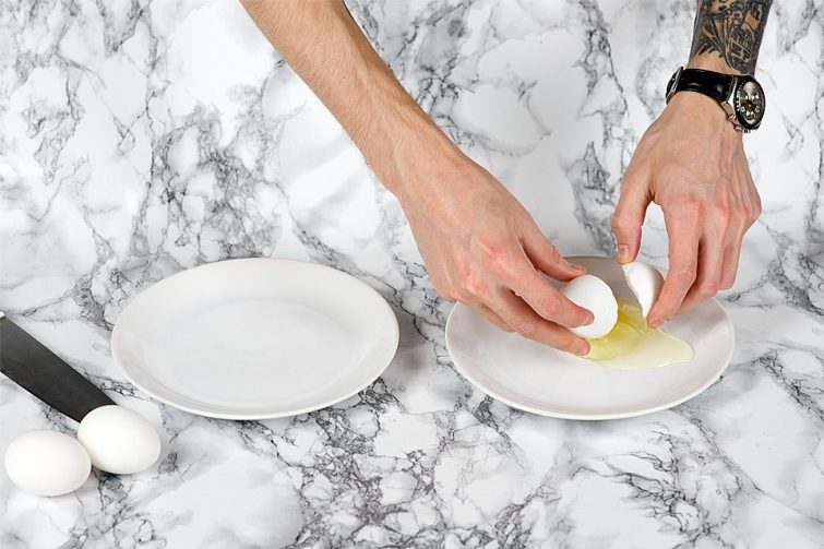 Если не получается сделать это привычным переливанием яйца из одной половины скорлупы в другую, пригодится пустая пластиковая бутылка. Нужно поднести горлышко к желтку и нажать на бутылку — желток всосется внутрь, и его можно будет перенести и выдавить в отдельную миску.