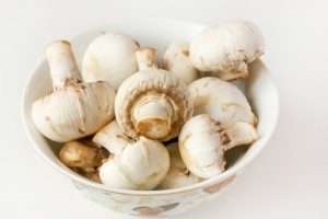 Со шляпок шампиньонов снимаем кожицу.