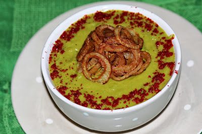 Суп-пюре из молодого горошка с хрустящим луком