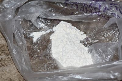 7. В полиэтиленовый пакет положить муку.