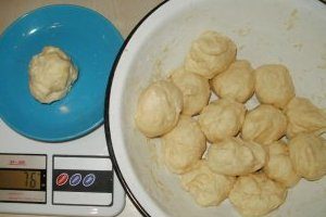 Разделить тесто на 15 комочков. Удобно делить при помощи весов.