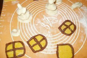 Фигурки, окошки, двери и т.п. достаточно просто и красиво получатся из мастики (смесь сгущенного и сухого молока с сахарной пудрой и добавлением нужного красителя: какао, куркумы и т.п.).
