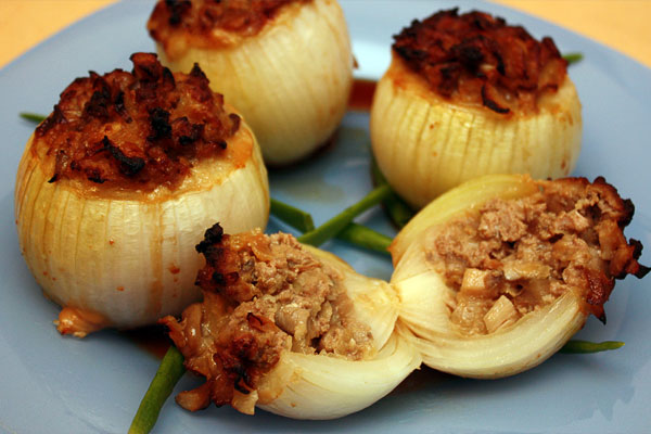 Запечёный фаршированный лук