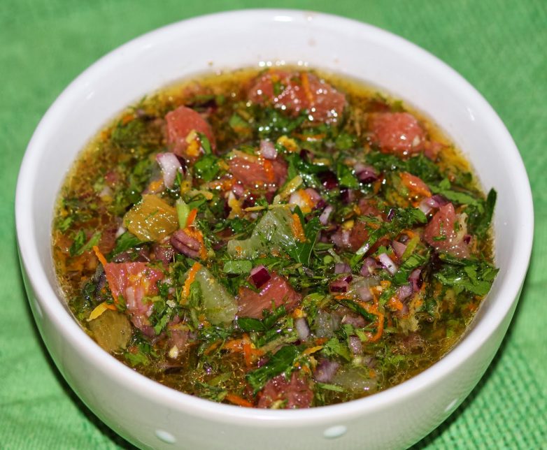 Эта сальса прекрасно будет сочетаться с рисом, рыбой и курицей.