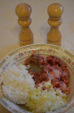 Готовим фарш: 50 на 50 свинины и говядины (примерно по 250 гр), добавляем мелко нарезанный лук и отварной рис (примерно 80 гр.), соль, перец по вкусу.