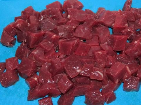 Мясо порезать на небольшие кусочки.