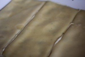 Далее отвариваем листы лазаньи в кипящей подсоленной воде. Каждый по две минуты.