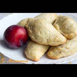 4. На середину каждого круга выложить сливовую начинку, края соединить и защипнуть косичкой, как вареники.