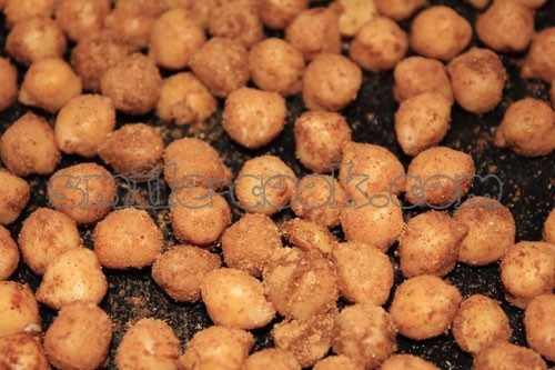 Для того, чтобы приготовить сладкий вариант этой закуски, нут нужно щедро посыпать корицей. Для острого варианта посыпать карри, паприкой или любыми другими специями.