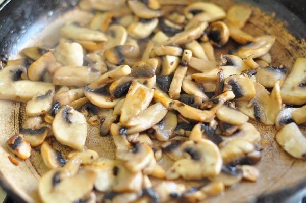 Грибы очистить, порезать, поджарить на смеси подсолнечного и сливочного масел, грибы должны слегка подрумяниться.