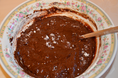 Аккуратно размешиваем получается жидкая смесь, и добавляем в нее муку и соду