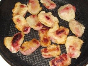 Жарим на хорошо разогретой сковороде с растительным маслом. С двух сторон, до румяной корочки.