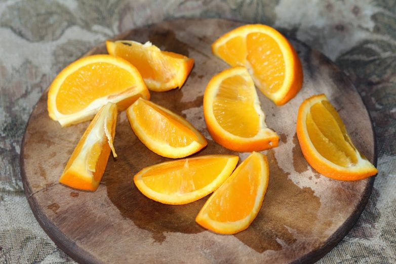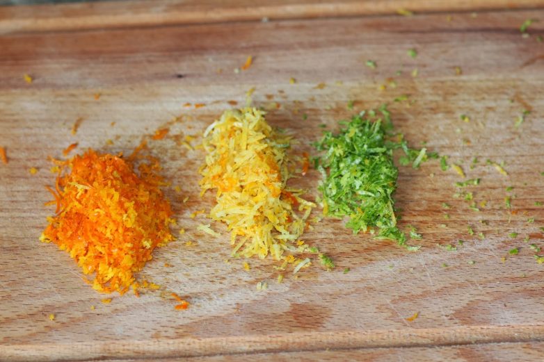 6. Лайм, грейпфрукт и апельсин филировать. Из остатков апельсина, лайма и грейпфрукта выжать сок.