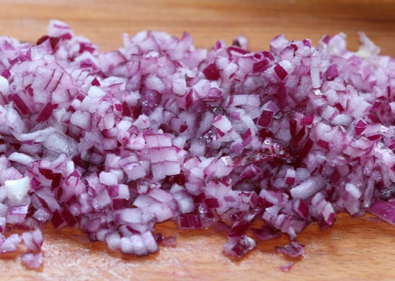 8. Смешать кубики лайма, грейпфрукта, апельсина и лука.