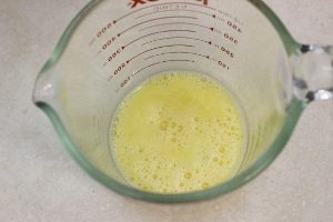Добавляем холодную воду в яйцо, должен получиться 1 стакан жидкости. Получилось меньше — доливаем до стакана.